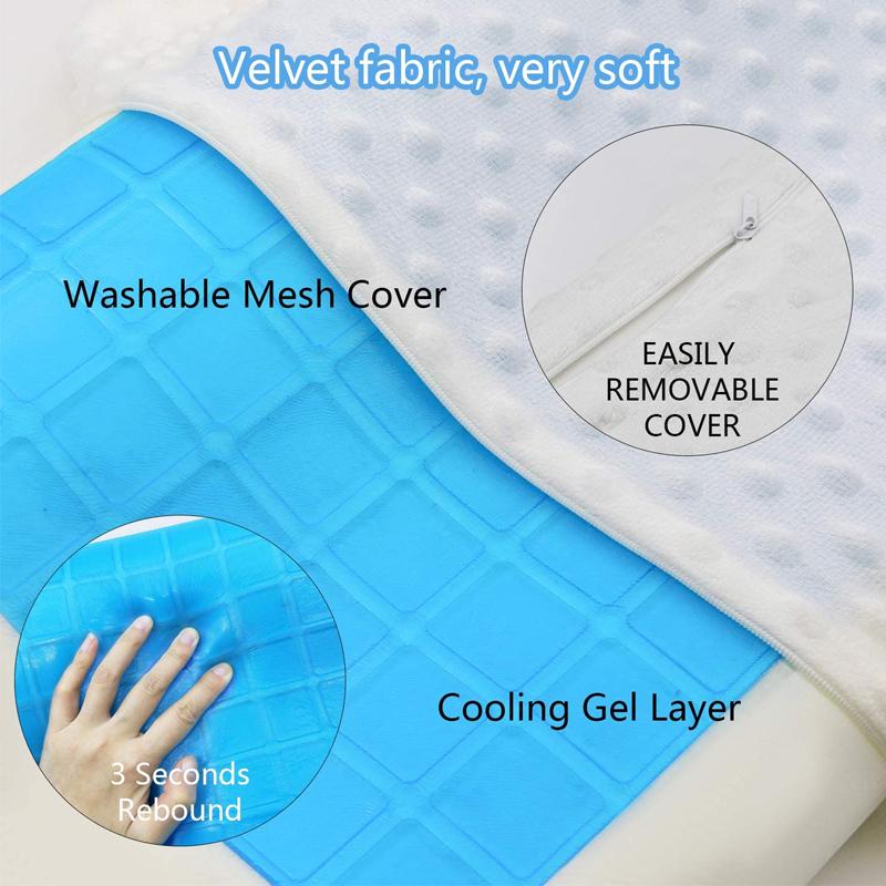 *This pillow is made out of special materials to set the cooling pillows for sleeping.*This is a real good gel pillow that gives people a cooling sleeping experience.This pillow is professionally designed, which is suitable for various sleeping positions include your side, your back, and your stomach, and so on. This is a multifunctional memory pillow with comfortable support.This pillow for sleeping uses a gel pad and high-resilient memory foam filling material, so we don’t need to adjust the pillows repeatedly while sleeping, which greatly improves our sleep quality.*Features:** The case of the pillow can be removed to improve product health and comfort.* You can also remove it so you can wash it when it gets dirty.* This is a very stable pillow that can be used for a long time.*Specifics:** *Colour* – White* *Pillow core* – Slow rebound memory foam + gel sheet (polyurethane)* *Size* – 50 × 30CM* *Weight* – 1kg* *Functions* – Pillow