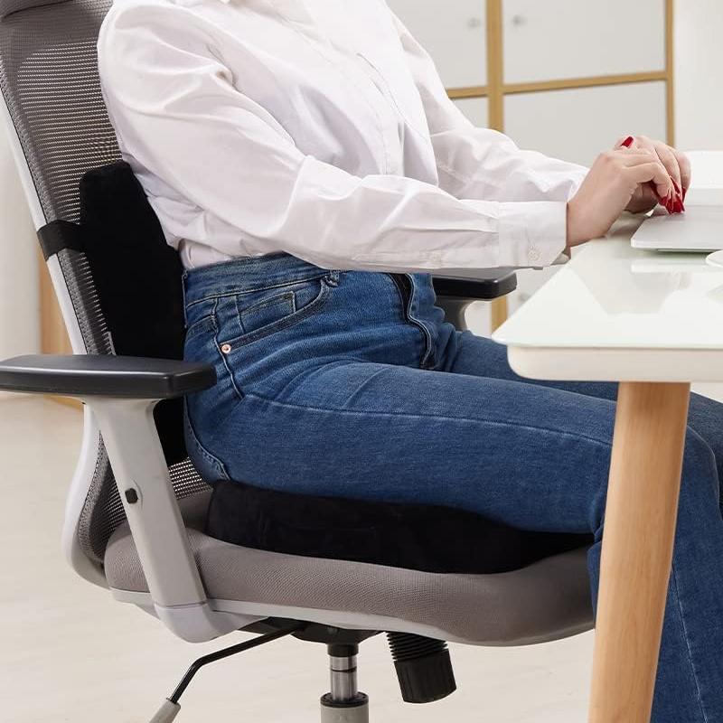 The COMFEYA Seat Cushion and Lumbar Support Pillow provide you with unparalleled comfort, designed to enhance your sitting experience. Made of high-density memory foam and covered with ultra-soft cloth, this cushion set provides excellent support and relieves fatigue from long periods of sitting. Improve posture and relieve pain whether in the office or at home.*Features:** *Thoughtful Design:* Both the seat cushion and lumbar pillow are made of high-density memory foam, ensuring durability and comfort. High-quality smooth zippers and soft cloth add a luxurious feel, while the non-slip bottom keeps the cushions firmly in place.* *Applicable Size:* The seat cushion measures 45 × 35 × 7 cm, and the lumbar support pillow measures 33 × 10 × 31 cm. The adjustable straps on the lumbar pillow ensure a perfect fit for a variety of chair sizes and user heights.* *Relieve Hip Pressure and Back Pain:* The ergonomic curve of the lumbar pillow conforms to the natural shape of your back, while the U-shaped design of the seat cushion fits your hips. Together, they help relieve back pain, lumbar discomfort, sciatica, and other issues associated with prolonged sitting.* *Works Anywhere:* Perfect for long office hours, road trips, train rides, airplanes, gaming, or enhanced wheelchair comfort. Designed to reduce fatigue and increase productivity, these cushions provide comfort wherever you go.* *Convenient to Use:* Both cushion covers are removable and washable, making maintenance a breeze.*Technical Specifications** *Colour:* Black* *Material:* Polyester, Memory Foam* *Seat Cushion Dimensions:* 45 × 35 × 7 cm* *Lumbar Support Pillow Dimensions:* 33 × 10 × 31 cm* *Weight:* 1.1 kg*Package Contents:** 1 x COMFEYA Seat Cushion* 1 x COMFEYA Lumbar Support Pillow