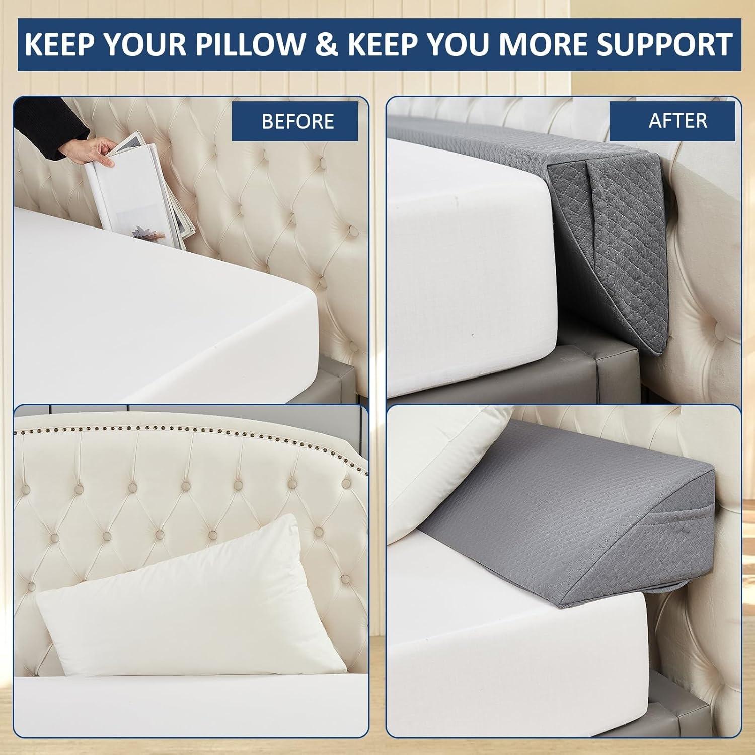 *_Fraser Country Headboard Pillow Mattress Wedge (Single)_*Crafted using high-density foam, this gap filler is strong, comfortable, and durable enough to serve for years. An ergonomic design makes it seamlessly fill the gap between the headboard or the wall and the mattress or the footboard.Plus, with a premium Jacquard Knit cover, this headboard pillow is smooth and breathable, allowing air to circulate and reducing the risk of allergies and asthma. Better still, this foam wedge pillow comes equipped with two side pockets to maximise storage for small items, such as remote controls, mobile phones, and more.*Features** Bed headboard gap filler wedge pillow* Fill the gap between the headboard or the wall and the mattress or the footboard* *Two side pockets for remote controls*, mobile phones, and other small things* Crafted using high-density foam* 100% polyester fabric cover, smooth and breathable – Jacquard Knit cover* No worry about your items falling under the bed*Specifications** Size: Single: 90 × 25 × 15cm* Material: Cover: Grey Jacquard Knit cover removable. 40D pure memory foam* Manufacturer Warranty: 1 Year*Please Note:* Due to health and safety regulations we are unable to accept this product for return under the terms of our Returns Policy for ‘change of mind’ purposes.Returns for these products will only be accepted where the goods are deemed faulty under the terms of our Warranty Terms & Conditions