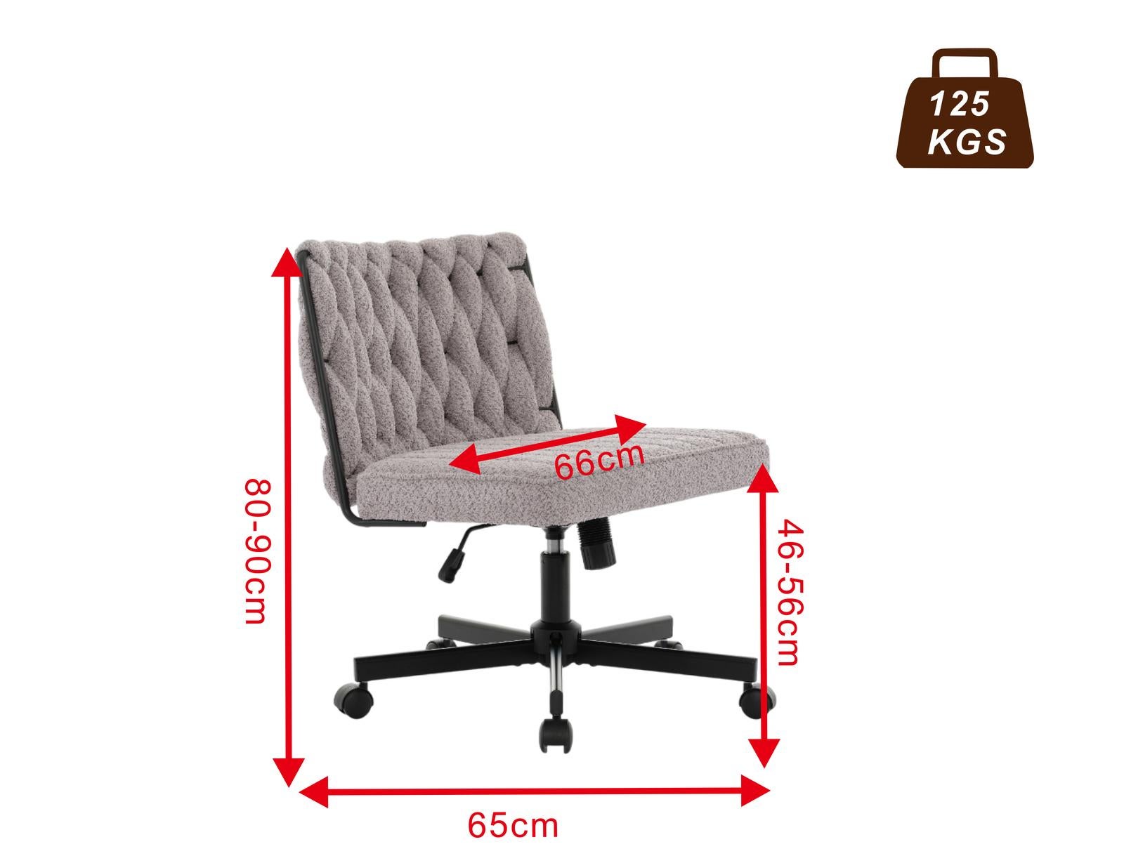 *Gorilla Office: Boucle Knot Back Chair Grey*Enhance your office or home with the Gorilla Office Boucle Knot Back Chair, a perfect blend of comfort, style, and durability. This chair stands out with its special thick knotty crisscross design on the backrest, making it a distinctive and eye-catching addition to any settingWith its clean boucle fabric, this chair adds a touch of elegance to any space. Whether you're working from home or in a corporate office, the Gorilla Office Boucle Chair is designed to keep you comfortable and stylish.The Gorilla Office Boucle Knot Chair is more than just a chair; it's a blend of art and comfort. Its sophisticated design makes it a perfect addition to any office, providing a touch of luxury that will impress anyone who walks through your door.*Specifications:** *Type:* Office Furniture* *Style:* Home Office Computer Chair* *Material:* Boucle Fabric – Plywood base 1.5cm* *Material:* Inner Iron Frame with 1.2mm Thickness for Enhanced Durability* *Mechanism:* Task Mechanism* *Gas Spring:* BIFMA, SGS certificated* *Chair Size:* 66×65×80–90 cm* *Seat Height Range:* 46–56cm cm refer to size image.* *Base:* Black Base\** *Colour:* Grey* *Max Weight:* 125KG*WARRANTY*Mighty Ape offers 1 Year Warranty. This warranty covers all manufacturing faults or defects. It does not cover wear, tear, or damage caused by use, accident, or failure to follow care instructions. The warranty is valid for 1 Year from the date of the order and is available to the original purchaser of the product only.