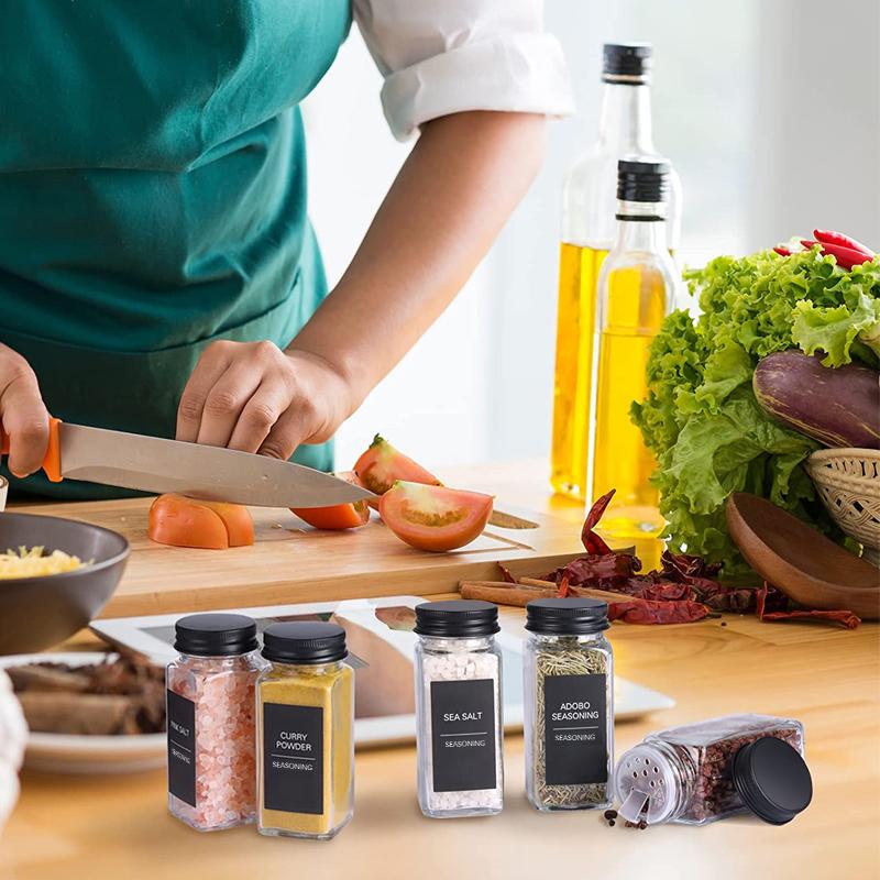 STORFEX 24-Pack 120ml Glass Spice Jars with Labels - Black